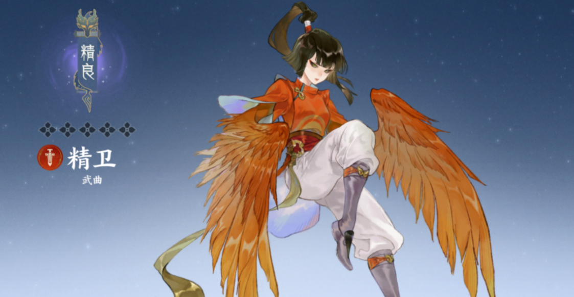 指间山海精卫是武曲系的幻灵,在团队里的定位是副C,有一定输出能力,主要用于补充伤害、收掉敌方残血单位,还能给队伍带来一些辅助效果,比如团队回血、解除队友的DeBuff,属于综合性角色,比较均衡。它的抽取难度很低,在游戏前期能起到关键作用,很适合平民玩家和新手使用。