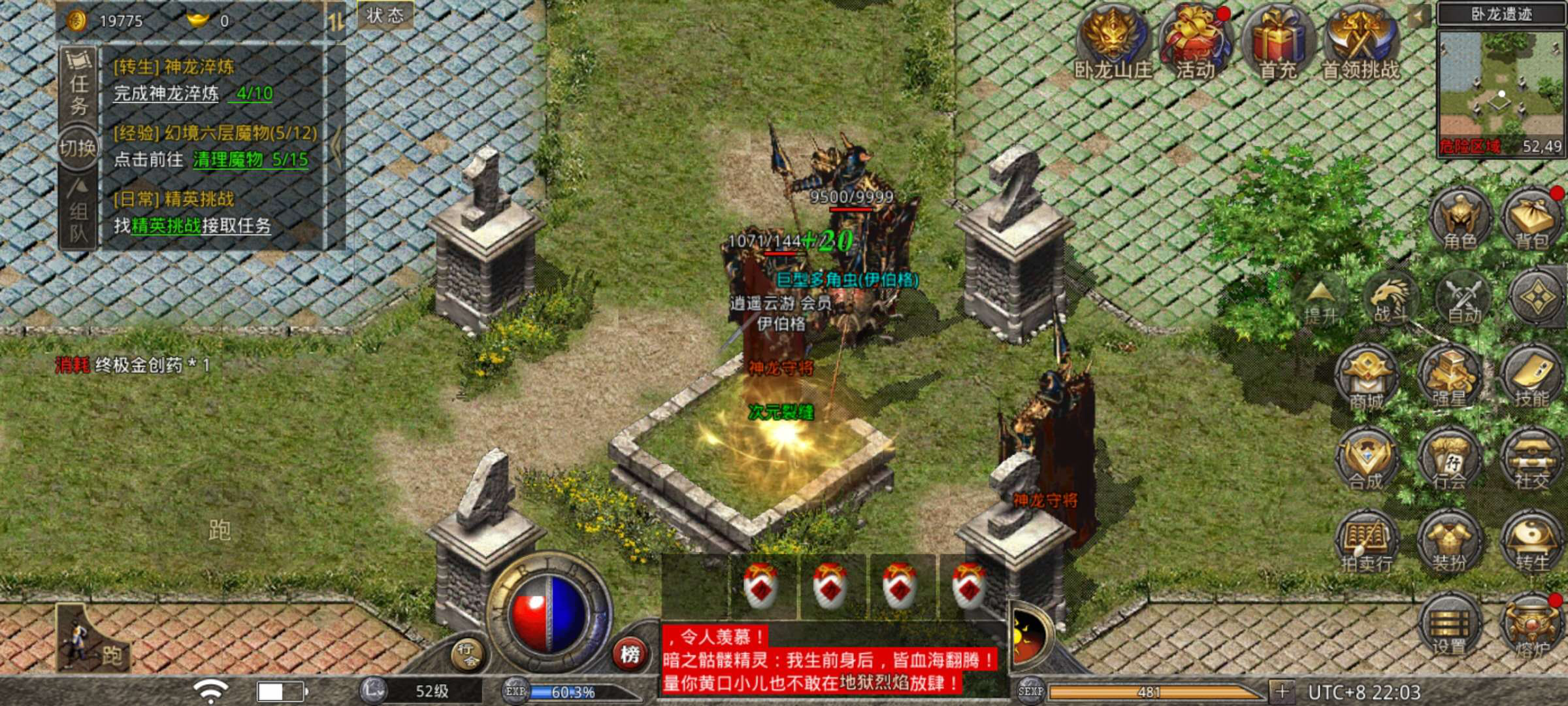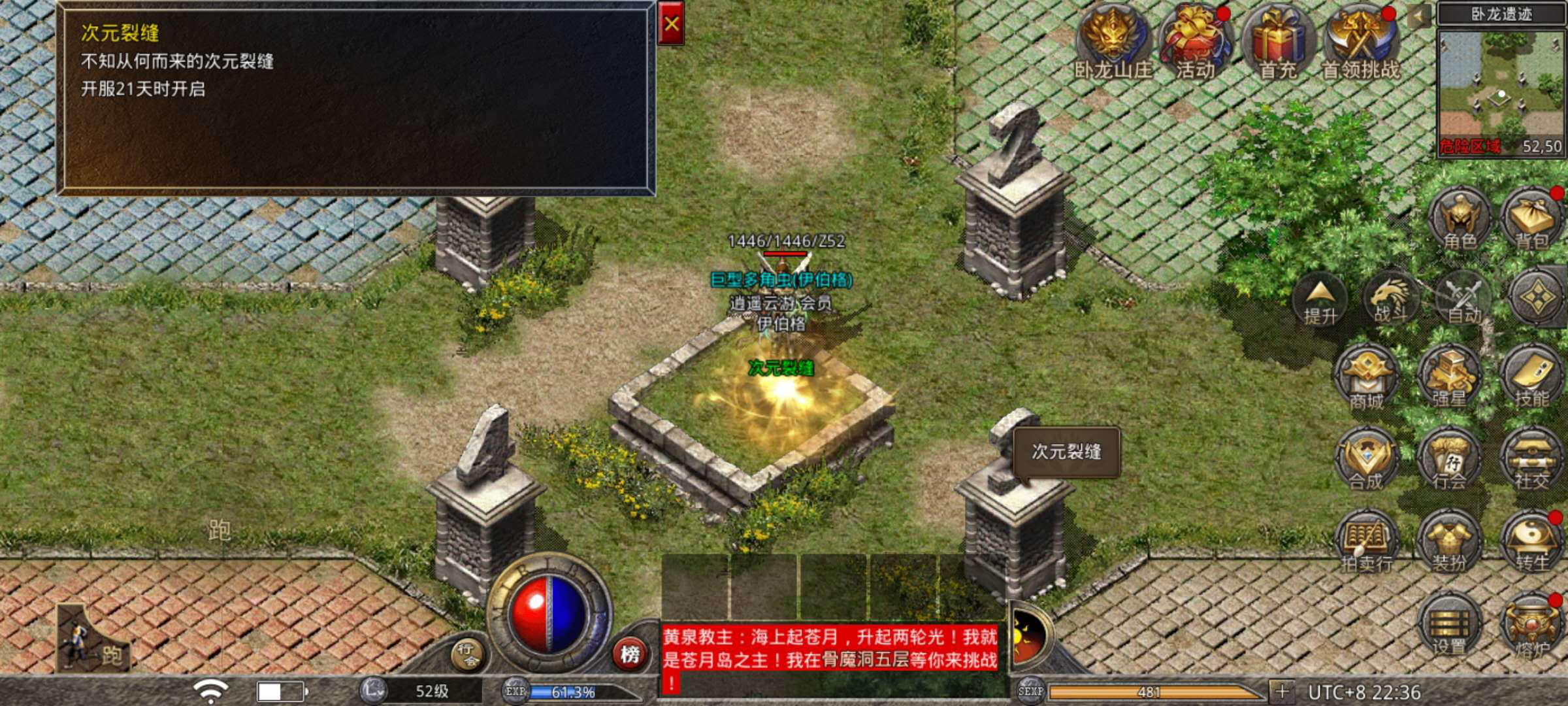 神龙帝国并非从一开始就对玩家开放,它的解锁需要经历一段酝酿期。具体来说,开服五天后会率先开放卧龙山庄,而神龙帝国的入口就设置在卧龙山庄内。玩家只需在游戏界面点击“卧龙山庄”选项,进入后再选择“卧龙遗迹”,即可直接传送到遗迹入口。