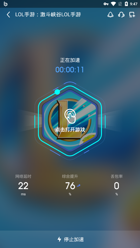 3)等大家拿到B测资格后,就能回到biubiu给游戏加速了,届时英雄联盟手游会自动启动。