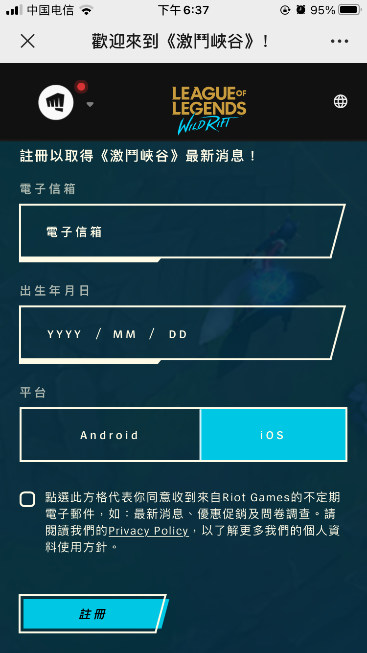 大家可以点击“英雄联盟手游B测IOS版预约地址”,把相关信息填写完整后,选择IOS选项就能完成预约注册啦。不过要注意,IOS端的预约名额非常有限,建议大家尽早操作哦~