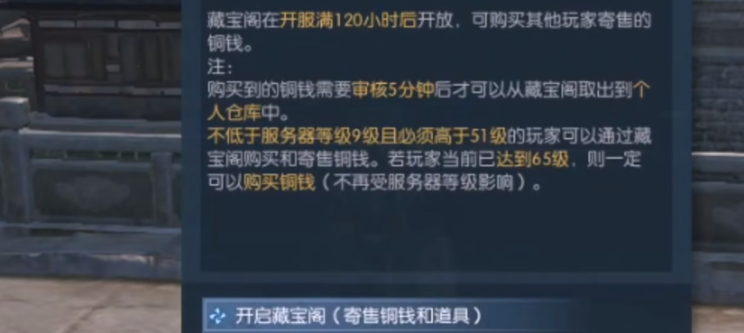 玩家在藏宝阁进行交易时,无论是售卖还是购买都要扣除手续费,但手续费的金额很低。若想在藏宝阁出售物品,玩家还需满足游戏设定的条件,例如开服时间满120小时、修为达到一定数值、等级符合要求等。