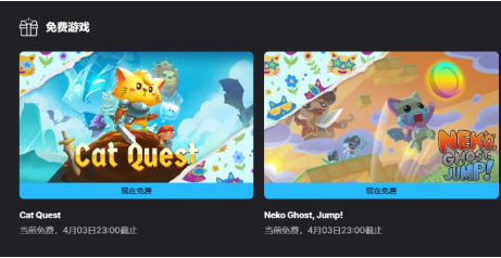 Epic商店本周免费赠送两款游戏的最新消息来啦!大家可以免费领取冒险类的《猫咪斗恶龙》和解密类的《Neko Ghost, Jump!》。领取通道会在4月3日23:00关闭,只要登录Epic商店,就能把这两款游戏永久收入自己的游戏库。机会难得,可别错过这次福利哦!