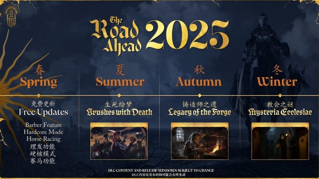 此外,战马工作室还计划在今年的夏季、秋季与冬季,为《天国:拯救2》陆续推出“生死绘梦”“锻造师之遗”“教会之谜”等DLC内容。