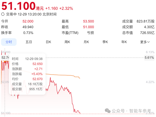 零跑在2025年年初时股价仅三十几块、不到四十元,市值约五百亿;到这一年其市值最高曾突破一千亿,不过进入四季度后,受行业整体板块及大盘回调的影响,目前股价出现了小幅回落。