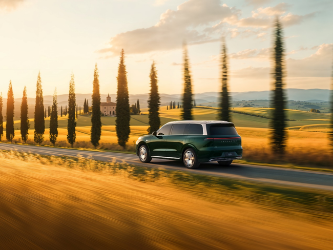 车色方面,零跑D19“松谷绿”选用低饱和度的、近乎墨绿的智性色调作为基底,打造出一种沉静的权威感。并采用了百万豪车同款的巴斯夫高端车漆,阳光下泛出微妙金属珠光,阴天则沉稳如墨玉,动静之间尽显东方雅致。除松谷绿外,零跑D19还提供液态银、金属黑、天幕灰、光电白共计5款自然共生色,满足不同场景下的气质表达。