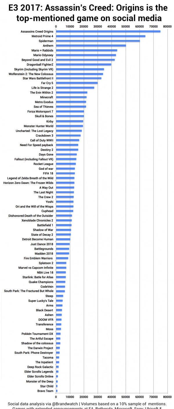 在今年E3游戏展的新品发布中,哪款新游戏最受玩家瞩目?近期国外媒体开展了一项数据统计,结果显示育碧旗下的《刺客信条:起源》成为了E3展会期间玩家关注的核心。