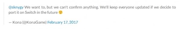 推特译文:@Sknygy我们希望能给出确认,但目前无法对所有情况都予以确认。若未来我们确定登陆Switch平台,会及时向大家同步相关消息。
