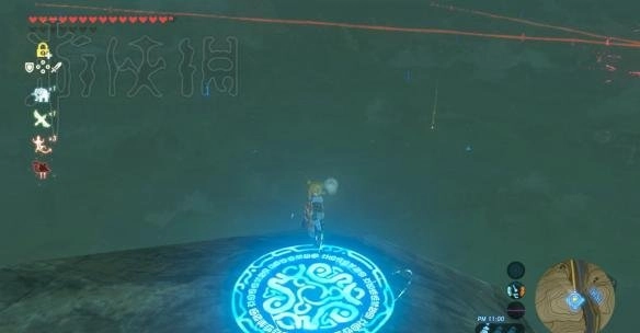 ※要是鸟人村的神兽已经成功解放,那神兽射出的红线就是最理想的参照物了。你只需把神兽的位置固定在画面顶端,同时让红线延伸至海拉尔城的末端刚好落在画面右端就行。
