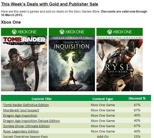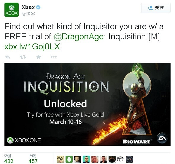 与此同时,微软Xbox Live平台也在开展“Deals with Gold”游戏促销活动,众多3A游戏及DLC均以折扣价售卖。文中提及的《龙腾世纪:审判》便享受四折优惠(即售价为原价的60%)。需要留意的是,该促销活动仅对Xbox Live金牌会员开放,活动结束时间同样为3月16日。