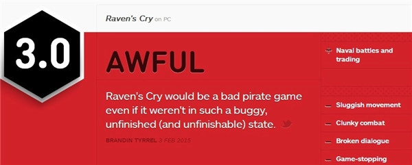《乌鸦的悲鸣》这款海盗游戏质量相当低劣,就算再延长几年制作时间,也改变不了这一事实。