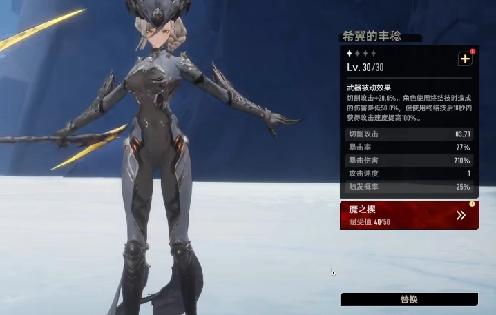 希冀的丰稔作为一把金色稀有度的长柄武器,其被动效果堪称独特。该武器的切割攻击加成高达20%,这使得玩家施展终结技时,能打出更为可观的伤害。尽管使用终结技时造成的伤害会降低50%,但在终结技释放后的10秒内,玩家将获得100%的攻击速度提升。如此一来,玩家的攻击速度大幅加快,连招也变得更加流畅。在实战过程中,玩家可借助这快速的连招迅速对敌人展开打击,在短时间内爆发出强大的战斗力,此武器尤其适合偏好快速连续攻击敌人的战斗风格。