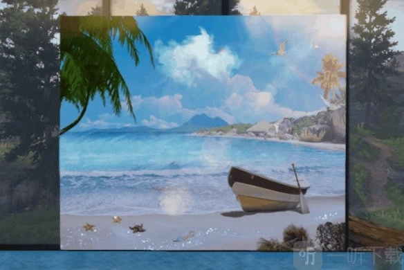 挂画上绘制着第四赛季的标识,简洁的白色画框与清爽的海景相互映衬,沙砾于阳光之下闪烁着光芒,这无疑是给予末世勇者最为优渥的嘉奖。