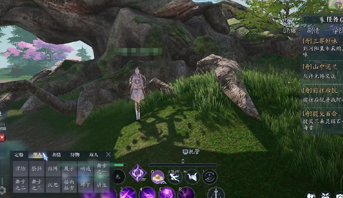 玩家需前往桃林地区左上角,找到一棵大树,接着点击祭拜技能,触发奇遇任务前置条件。之后,玩家顺着树林向北走,就能找到第二棵大树,此时点击祭拜键,便可开启桃林神树奇遇流程。当完成对所有树木的祭拜,玩家就能完成桃林奇遇之一。