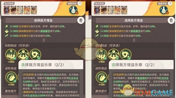 3、我方选择的增益为:疗愈竖琴与震撼钟鸣。