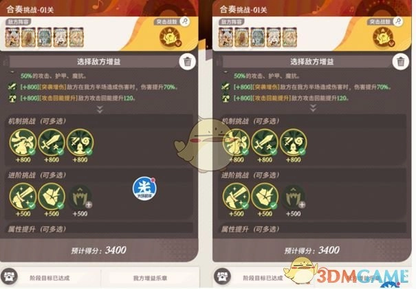 5、3200分勾:首排设置3个800分的挑战机制,下方搭配2个500分的挑战机制。