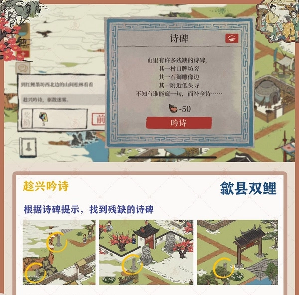 以上便是徽州探险歙县双鲤攻略的所有内容啦,小伙伴们依照流程完成任务就行。更多关于江南百景图游戏的内容,敬请留意firedg,咱们下次再会哟。