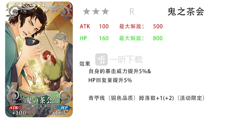 以上便是一听小编为大家带来的关于本次“all信长总进击 唠唠叨叨最终本能寺”活动卡池的相关介绍。总体而言,若仅从强度层面考量,不建议大家强行抽取此次卡池,毕竟无论是从者还是礼装,表现都较为普通,仅推荐对角色有强烈喜爱的厨力玩家抽取。