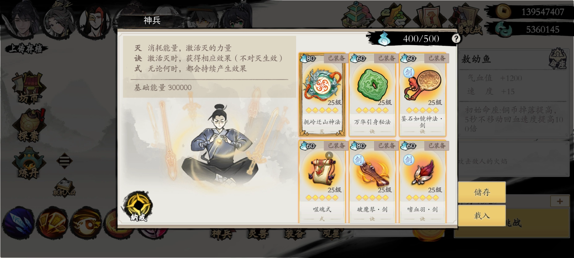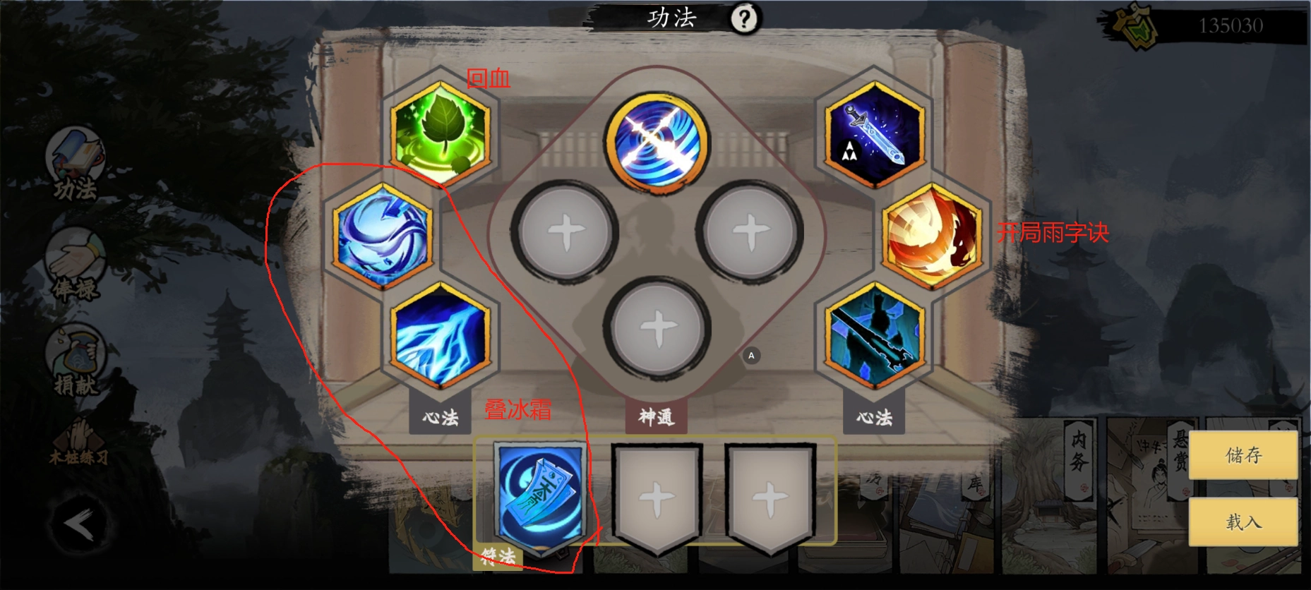 搭配情况如下:用有备无患替换沉心,实际上总输出并无变化(具体原理在此不详细阐述)。舍弃不必要的神通,目的在于减少开局未拿到雨字诀的概率。此外,开局就能获取雨字诀,不仅能降低广告券的消耗,在竞速时还能提前学习一个技能。若生存能力不足,可以将云霖换成妖花与木球。