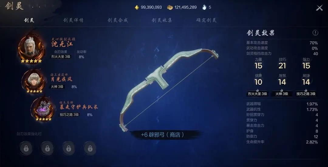 在游戏里,剑灵存在主副之别。主剑灵的效果在攻击中体现得更为直观。对于弓而言,所介绍的主剑灵可在三者中任选其一,原因在于这三者的灵魂剑刃效果均为烈火大圣,此乃弓职业毕业的最佳效果。它不仅能够直接对怪物造成按百分比数值计算的伤害,还能直接提升弓的命中率。要知道,远程职业最怕的就是boss身上跳出Miss提示,而有了这三位得力助手,箭箭命中目标便不再只是梦想。