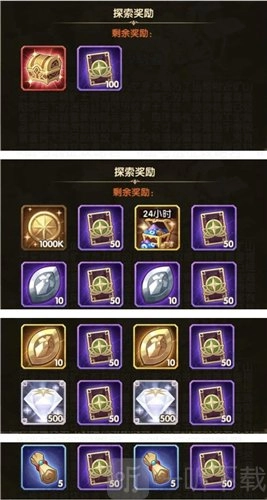 图中,白色字体代表击败怪物,蓝色字体代表触发机关,红色字体代表启动小车,按照数字顺序依次触发就行。BOSS的挑战难度较低,无需太过在意,全部奖励内容如下图所示: