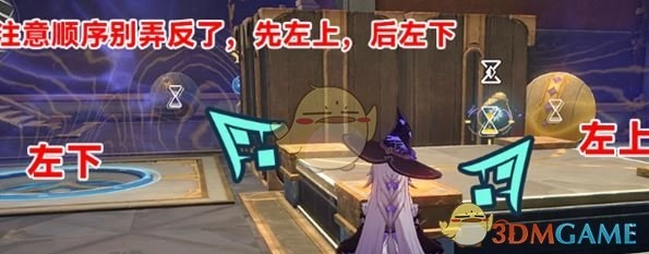 6、依照顺序,逐个激活位于左上角、左下角、右下角、右上角的压力板,如此便能完成解密。
