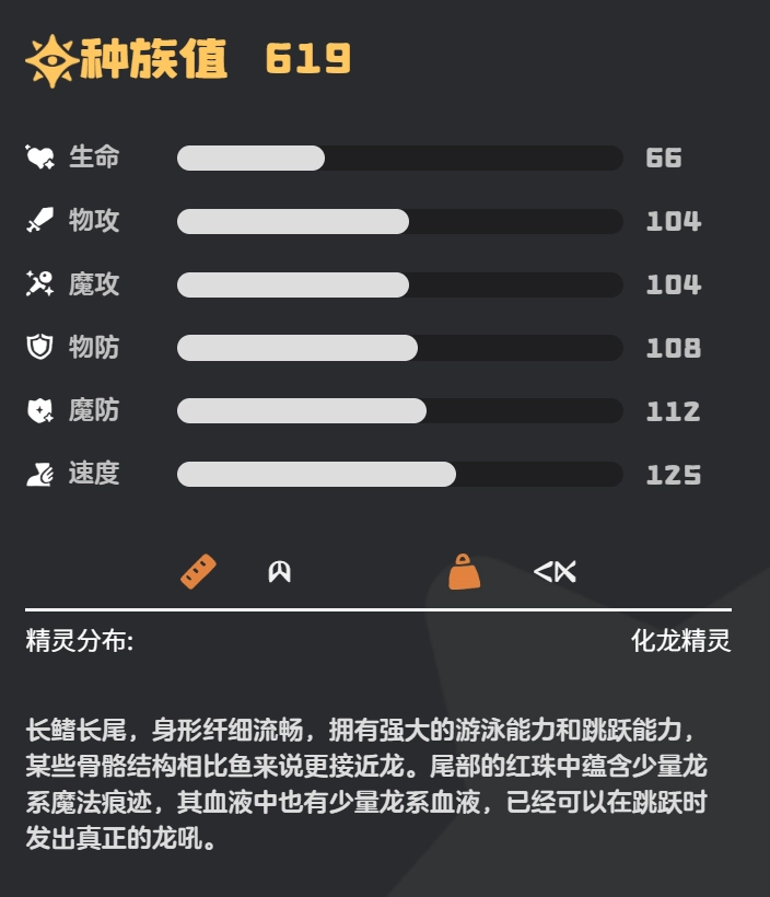 在游戏中,龙鱼君主的种族值情况如下:其生命值在游戏里未被具体提及,不过综合多方面分析,应处于中等水平。它的物理攻击数值为76,魔法攻击数值为76,物理防御数值为86,魔法防御数值为90 。