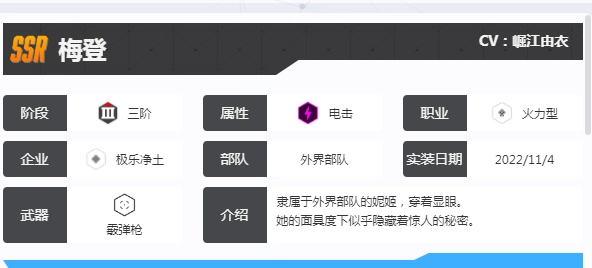 胜利女神新希望里的梅登表现如何?外界部队属于特殊的镇压部队,主要职责是凭借武力压制异常者。今天就为大家介绍一下这个角色的主要优势,看看她都具备哪些特点。