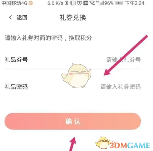 3、最后,填入礼券号和礼券密码,点击“确认”即可。