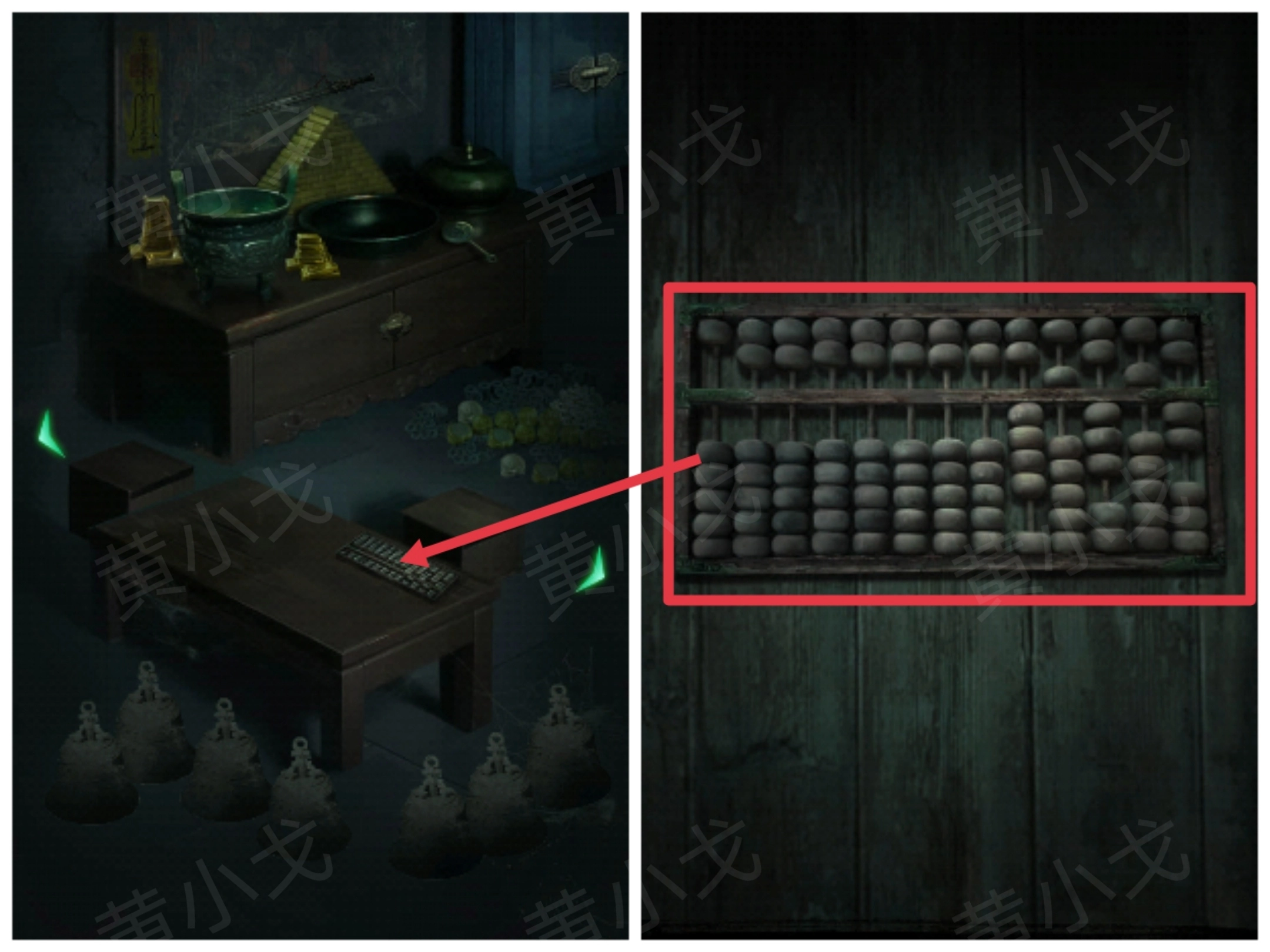 16.点击右侧棺材上的机关,根据算盘上的数字,调整机关上的珠子