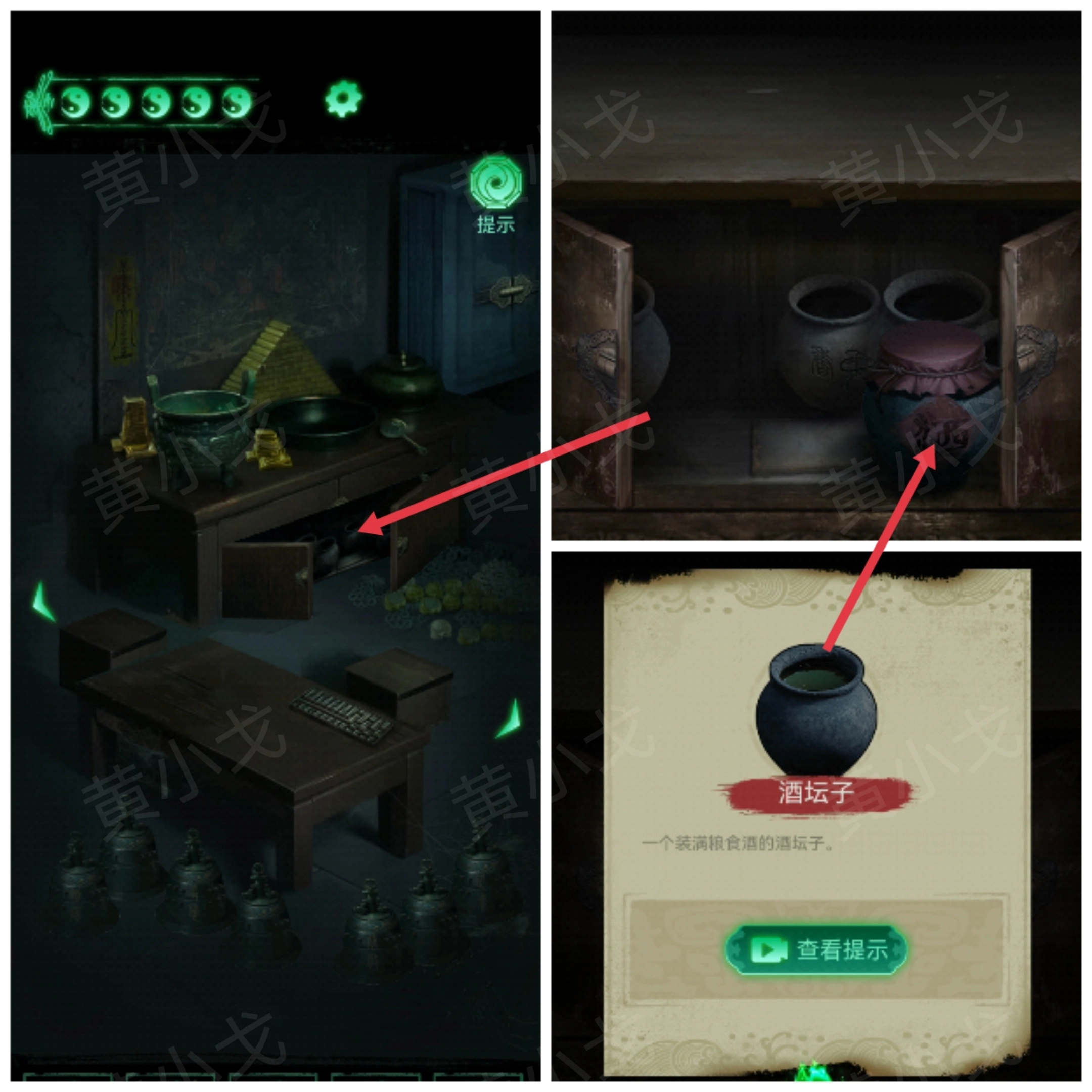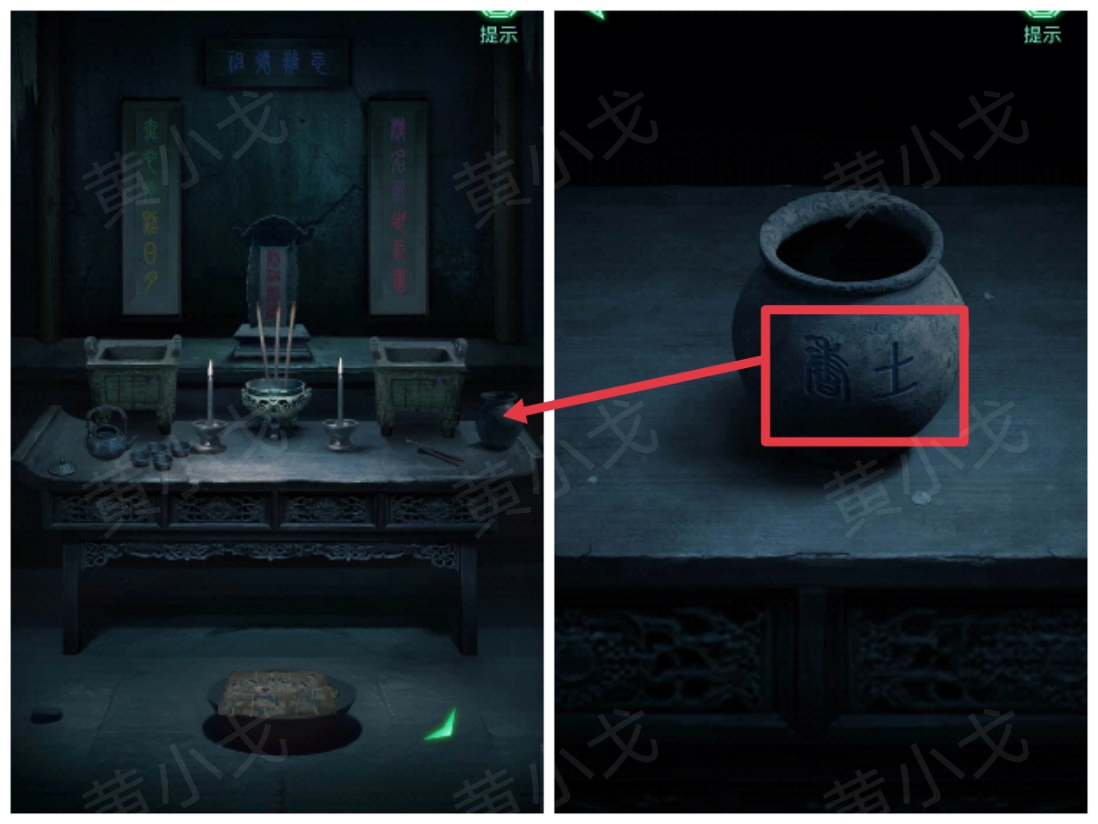 12.点击查看桌子上的陶罐,获得线索