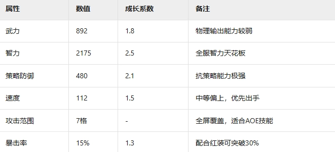 二、基础属性与成长(满级参考)