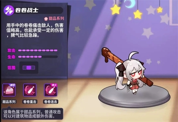 卷卷战士有一定的生存能力,在搭配回血辅助的情况下可以直接当前排,持续驻场。同时因为自身伤害出众,所以主线关卡常常一排卷卷一排辅助就可以等着过关了