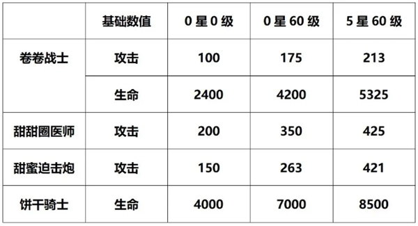 以下表格,让大家横向对比,同是满攻击潜能的甜甜圈医师和甜蜜迫击炮,以及以血量见长的饼干骑士