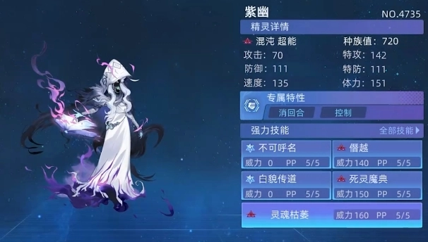 从技能体系而言,紫幽的技能涉及攻击、强化、控制、续航等多个层面。其攻击技能具备多样的威力与特效,有些技能或许还会带有额外效果,以此来适应各类对战场景。强化技能可以增强自身属性,为后续战斗创造有利条件。控制技能能够对对手的行动形成干扰,比如让对手陷入异常状态,或是限制其属性技能的施展等。续航技能则能够恢复自身的体力,保证紫幽在持久战中始终维持良好状态。