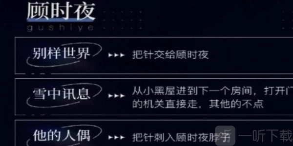 2、雪中的讯息,从那个小黑屋进入到下一个房间的时候,只需直接把门上的机关打开就可以了。