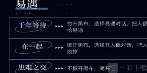 2、若要达成“在一起”的状态,就得揭开那块黑布,与眼前那模样丑陋的人偶展开交谈,随后将其付之一炬。