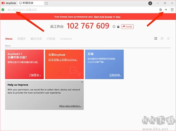 1. 开启anydesk远程软件,进入软件界面后,你会看到红色的ID ,请牢记它,这是远程控制所使用的凭证。