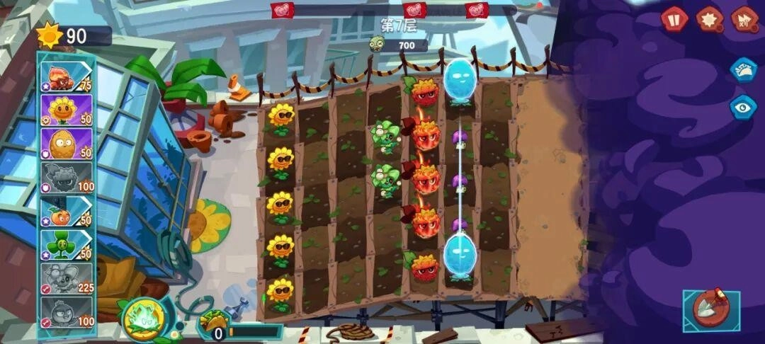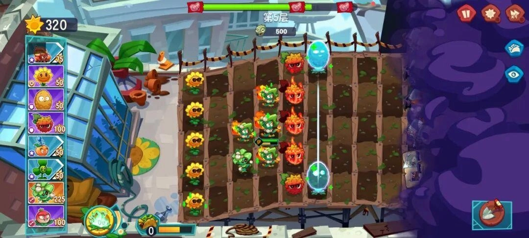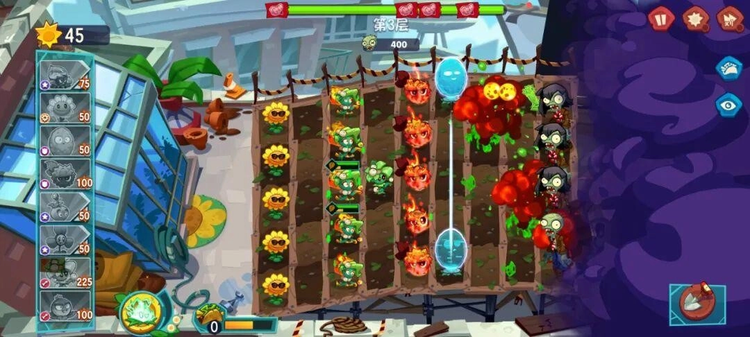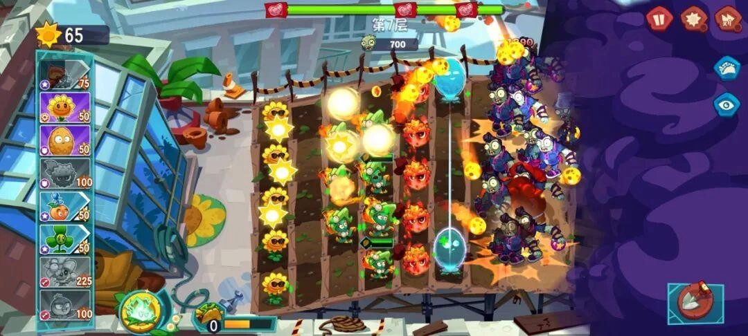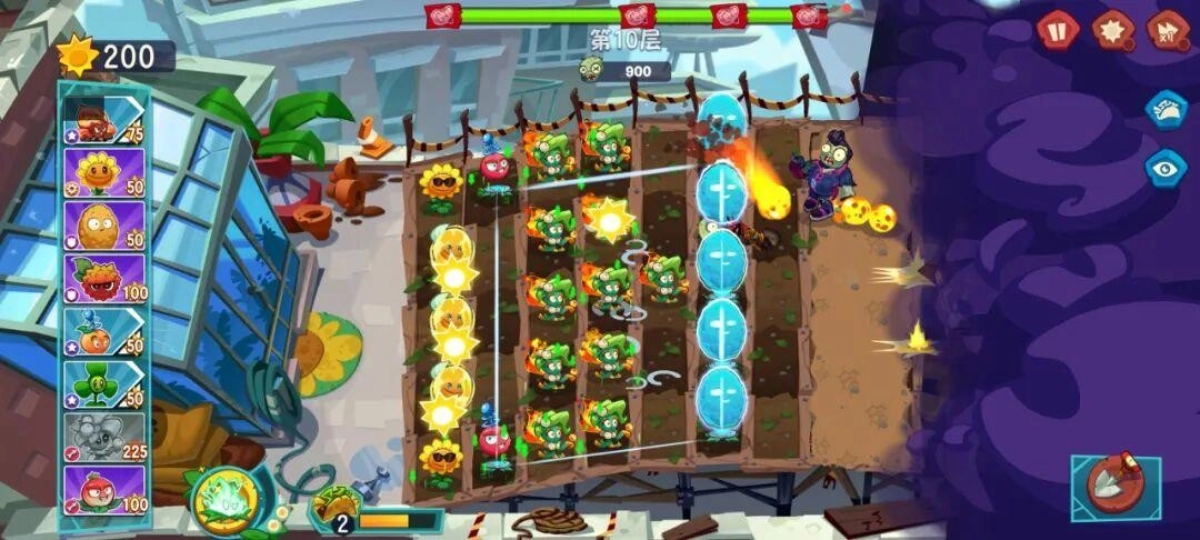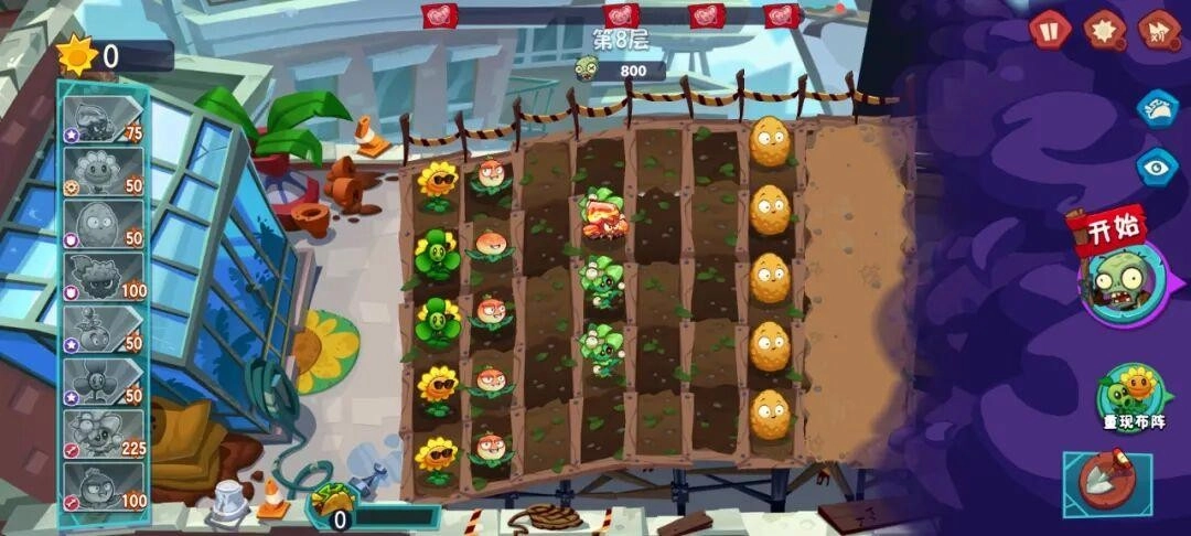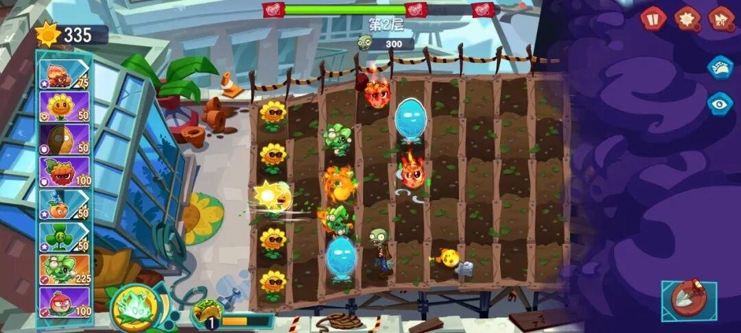 进入第2关后,开局的布局和第1关完全相同,只要跟着节奏操作就行。到了后期,可能会有部分防御植物受损,这时候及时补种上新的,就能顺利通过这一关了。