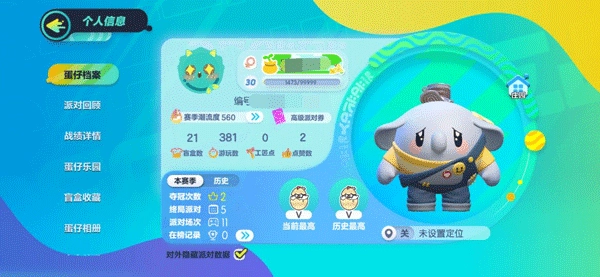 2、在蛋仔的右上角能看到我们的历史总潮流度,这个数值是从开始玩游戏时就计算的。