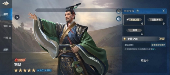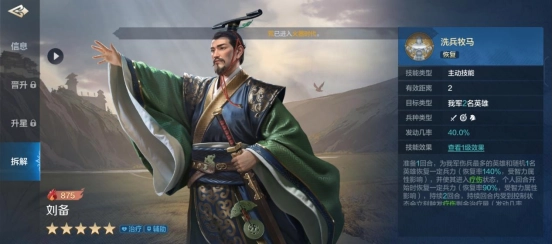 在技能搭配方面,刘备的选择较为自由。他既能携带控制技能,也能够选用辅助或治疗技能,像“动摇军心”“全境征战”“制敌机先”等,都是相当不错的选择,其主要目的在于为队伍增添更多功能性。