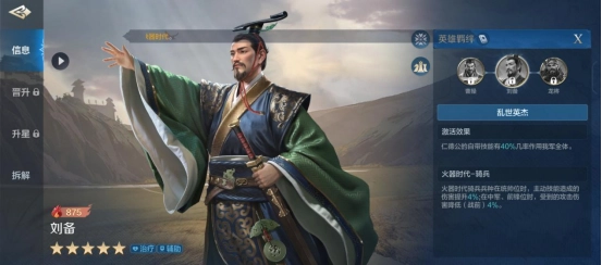 刘备与龙将、曹操一同出场会触发命运羁绊“乱世英杰”: