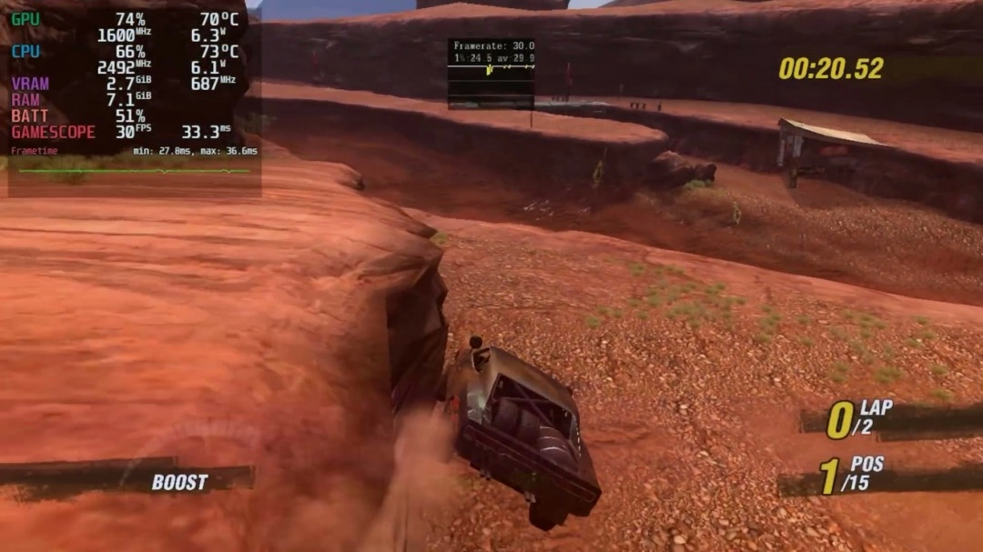值得一提的是,《机车风暴》也能在Steam Deck上运行。尽管它在Steam Deck上的表现不算完美,但玩家依旧能从中获得游戏乐趣。只要把GPU时钟频率调整到1600MHz,就能让游戏稳定运行。另外,还建议关闭MSAA抗锯齿功能,并搭配使用画面补丁。