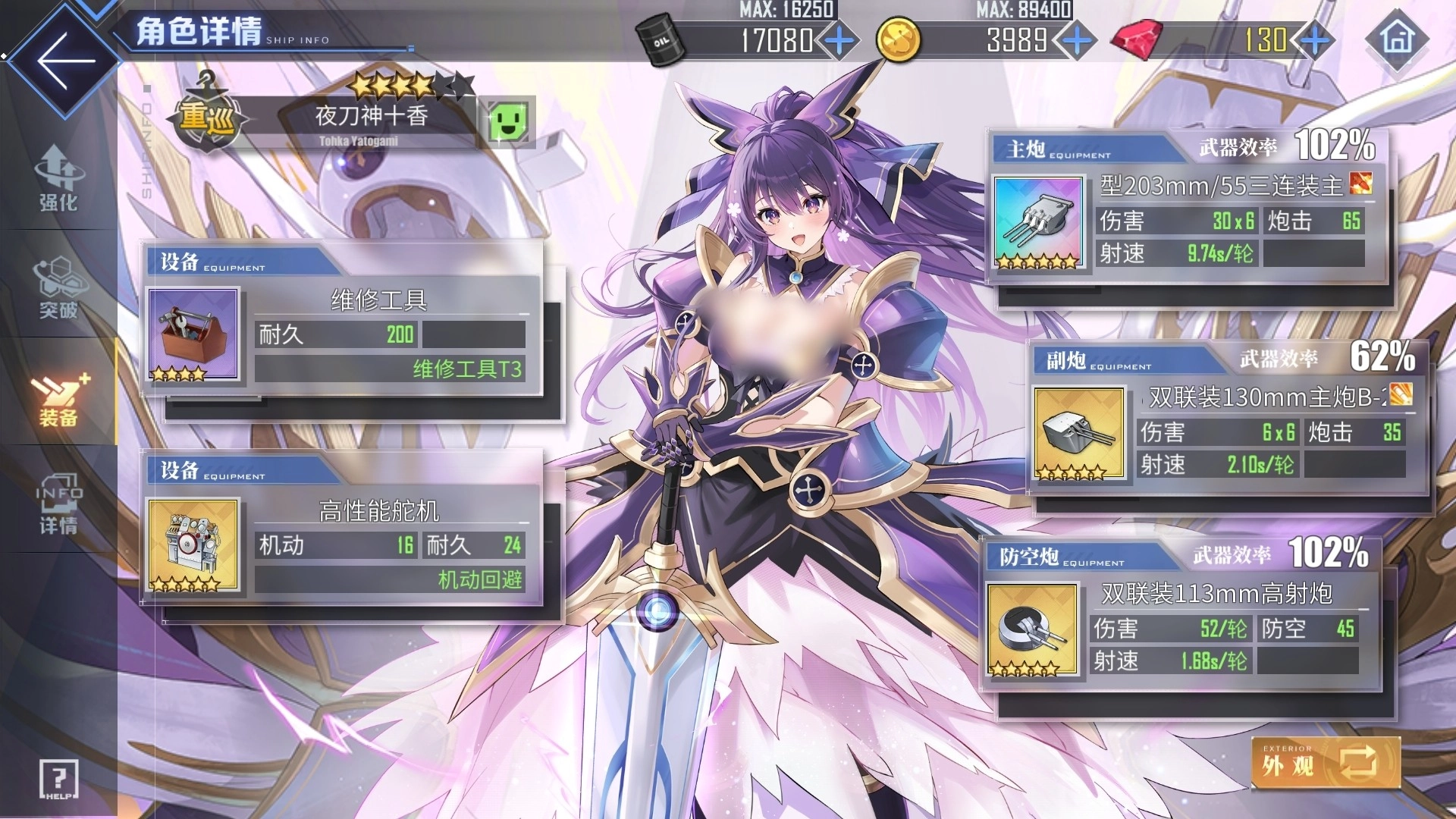 夜刀神十香的专属兵装鏖杀公,能让她永久减免8%所受伤害;且每次击败敌船后,自身暴击率提升8%,该效果最多叠加三层,一旦叠加成功便持续至战斗结束,期间层数不会减少。在舰娘装备搭配方面,常规的彩色重巡炮她都能适配,若没有彩炮,欧根炮或巴尔的摩炮也是不错的选择;副炮栏可选用每月兑换一次的B13,金128亦可;防空炮优先选择泛用性最高的金113;设备栏则遵循传统重巡配装思路,金舵机搭配维修工具的组合,足以支撑她应对多数作战场景。