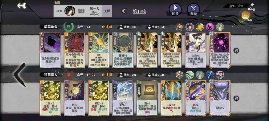 尽量避开疯魔这类选择,优先在锻体或修为方面提升自身;每一轮首次更换时,优先选取体魄相关的牌,以此为冲击元婴境界做好准备。