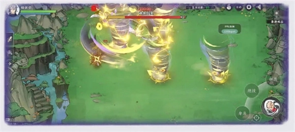 自身旋转,化身为旋刃风暴对目标展开追击,与此同时,召唤出多个小型旋风朝四周飞散开来。玩家需通过走位操作,巧妙躲避白皇的旋刃风暴以及那些被召唤出的小旋风,并且在躲避过程中,还能够同步进行远程攻击。