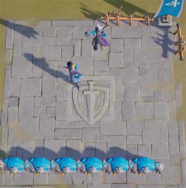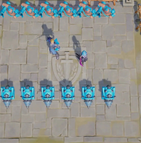 保证阿喀琉斯离泰伦最近吃到泰伦链接,泰伦站位靠前主要承伤,顽皮石人前排提供控制。