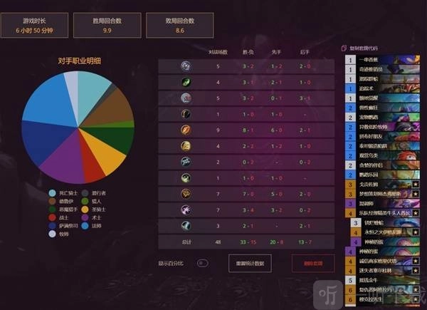 虽说只是T3卡组,但上传说想必不成问题。关键在于,和传统猎人卡组相比,它趣味性十足,每回合都有不少抉择点。不管是胡蛋,还是提前出马林,都能带动这套卡组的节奏。并且,它融合了普通宇宙猎与蛋猎的长处,既有蛋猎的高上限,又具备宇宙猎的抗节奏能力,称得上是一套上下限都很出色的卡组。尤其值得一提的是,它不惧当前版本热门的大法术法,不像传统宇宙猎打大法术法时几乎是九一开的劣势局面。(附上战绩,23号在欧服最高打到44名)