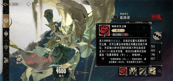 四号位的希波蒂处于副C位置,其大招能让群体降低暴击抵抗,提升被暴击的概率。释放大招后,恰好全队会进入血月状态,并且全队大招的血魂减少一点。