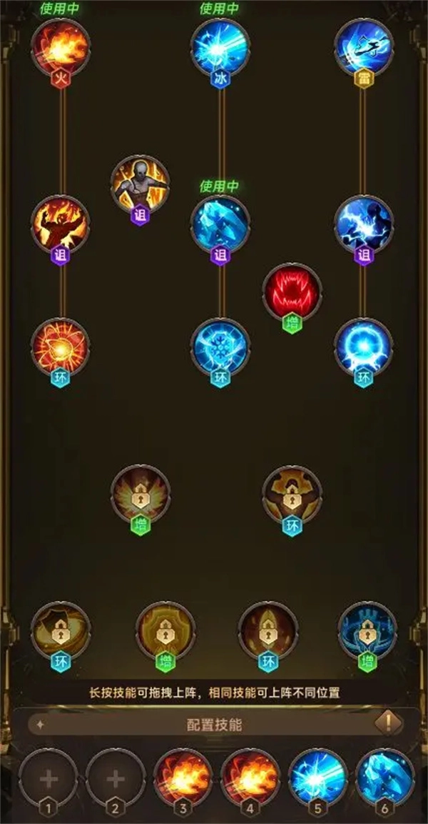 哨塔搭配完全自由,随着等级提升会解锁不同的哨塔,总共有6个放置位置,甚至能全部放上6个相同的塔。由于赠送了火塔的皮肤,因此前期建议在4、5、6号位置放置两座火塔和一座冰塔,这样就能轻松通关,局内战斗选项选择冰刺和火墙;等可以放置4个塔后,再补充一座冰诅咒塔,当18级解锁火魔哨塔时,要第一时间换上,以此增加大量基础点伤。