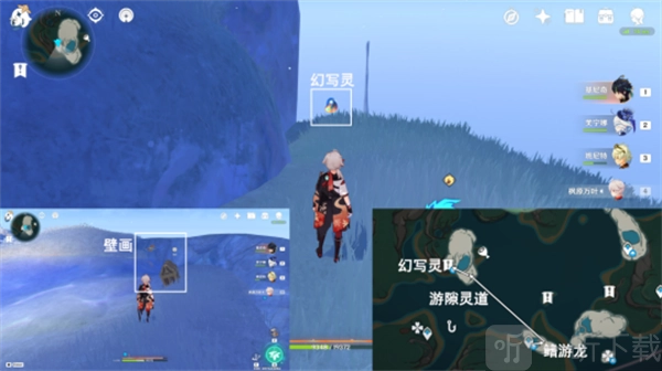 前往侧面下层平台,跟随幻写灵,前往壁画;